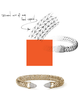 Our Artisan Series launches—a limited seriesof signature John Hardy silhouettes elevatedto high jewelry status.